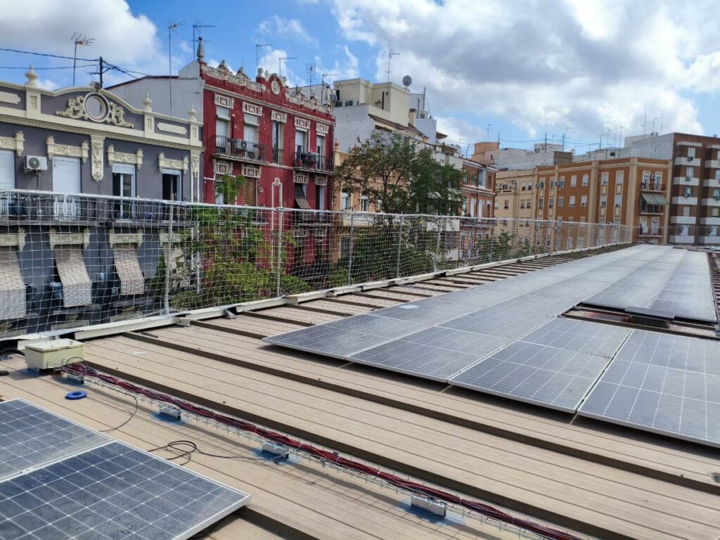 Es una aplicación crítica en la rehabilitación de tejados frágiles (como fibrocemento o cubiertas antiguas) o con grandes pendientes. La red se despliega inmediatamente debajo de la cubierta para detener al operario si este rompe la superficie del tejado, previniendo así caídas al vacío.